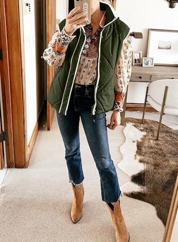 SHEWIN Puffer Vest Causal Sleeveless Quilted Jackets Zip Up Outerwear Vests Womens Fall Fashion 2024 6