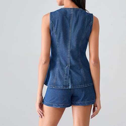Nituyy Women's Button Down Denim Waistcoat Vest Crew Neck Versatile Jean Vest Tops Slim Fit Oversized Jean Jacket 7