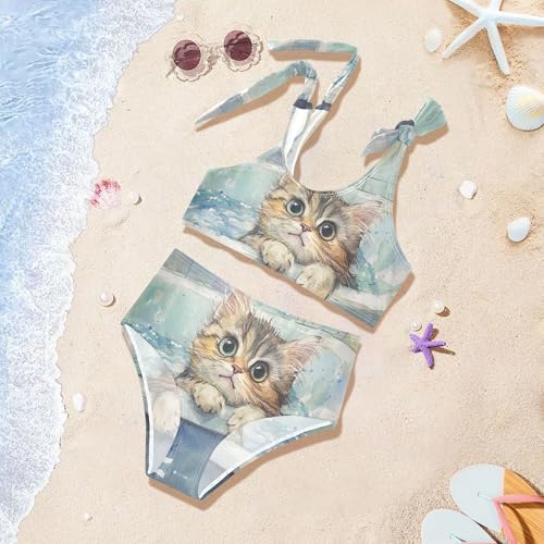 Watercolor Kitty Cat in Tub Girls Bikini Sets 2 Piece Swimsuits Bathing Suit Swimwear 2