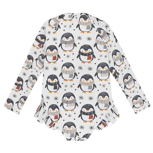 Penguin Snow Seamless Girls Long Sleeve Swimsuit Rash Guard One Piece Bathing Suits Zipper 3-12T 2