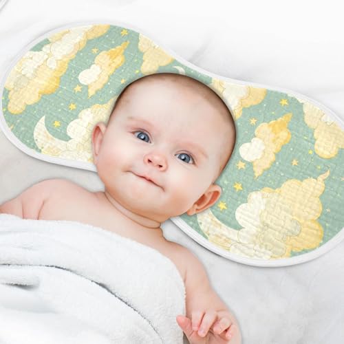 Yellow Star Clouds Cotton Muslin Burp Cloths Large Breathable Baby spit up Rags for Unisex Babies Set of 2, 22x11in 6