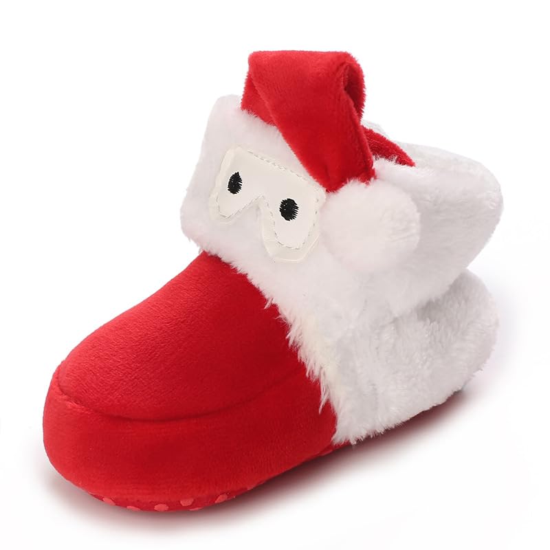 Baby Boys Girls Soft Plush Boots Infant Christmas Moccasins High Top Red Warm Booties Toddler Soft Sole Non-Slip First Walker Crib Shoes 7