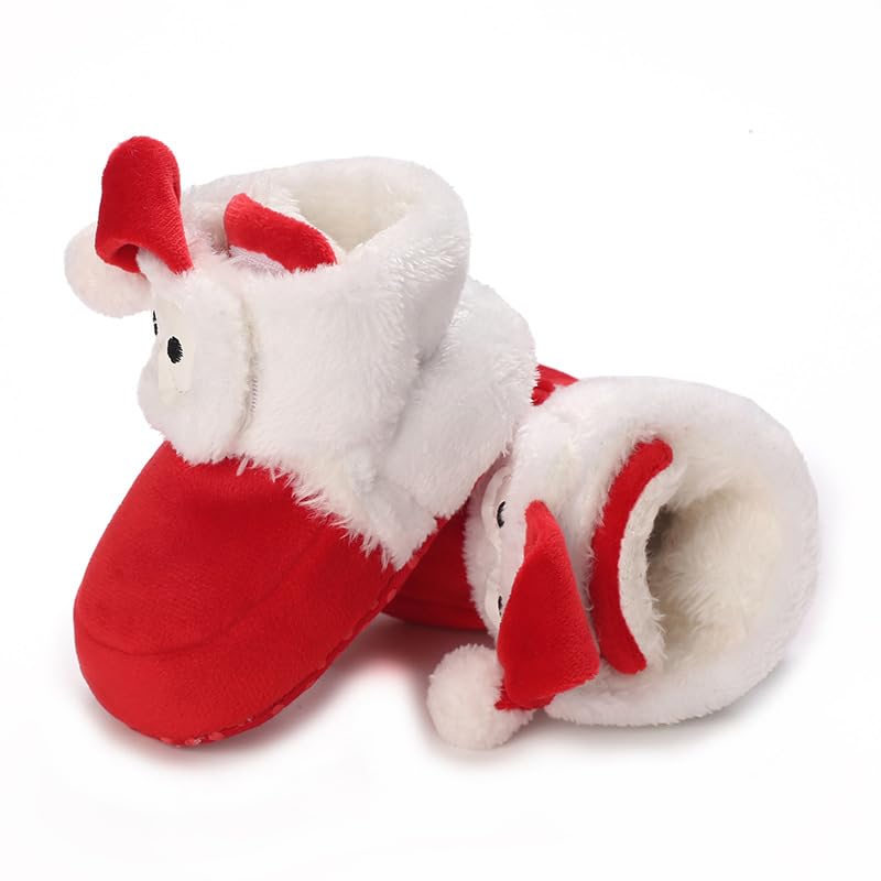 Baby Boys Girls Soft Plush Boots Infant Christmas Moccasins High Top Red Warm Booties Toddler Soft Sole Non-Slip First Walker Crib Shoes 4