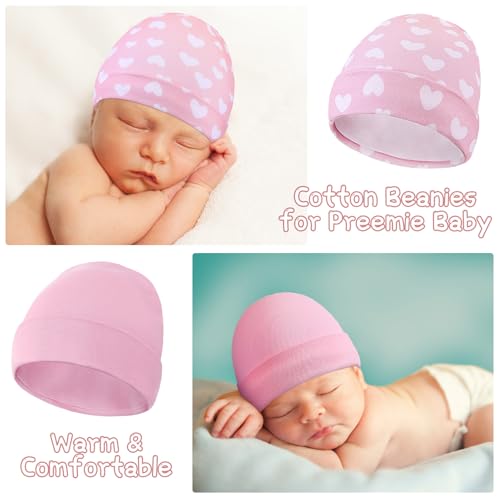 Newcotte 6 Pcs Preemie Baby Hats Cotton Preemie Caps Warm Newborn Beanie Premature Hat for Nicu Premature Boy Girl 4