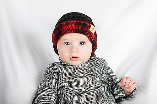 Funky Junque Beanie Infant Baby Skull Cap Hat (NO POM) - Ivory & Buffalo Check - Red/Black (Pack of 2) 5