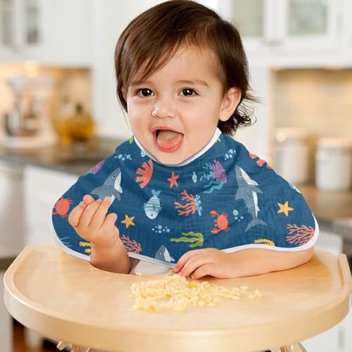 More information about 2 Pack Muslin Burp Cloths Sea Animal Navy Blue Cotton Baby Burp Cloths Ultra Soft Burping Cloth Absorbent Spit Up Rags for Newborn Boys Girls, Large 22" x 11"