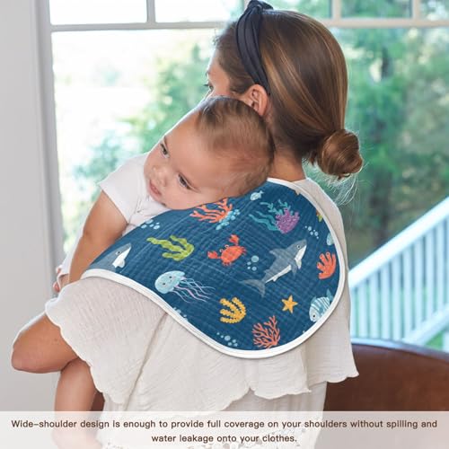 2 Pack Muslin Burp Cloths Sea Animal Navy Blue Cotton Baby Burp Cloths Ultra Soft Burping Cloth Absorbent Spit Up Rags for Newborn Boys Girls, Large 22" x 11" 5