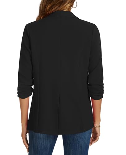 MINTLIMIT Blazers for Women 3/4 Ruched Sleeve Shawl Collar Open Front Business Jacket Blazer Work Office Blazers Jackets 3
