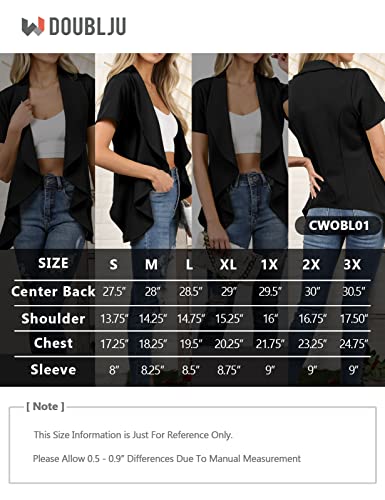 HOT ! DOUBLJU Casual Draped Ruffles Blazer Short Sleeve Basic Open Front Cardigan Jacket for Womens with Plus Size Work Office Suit
