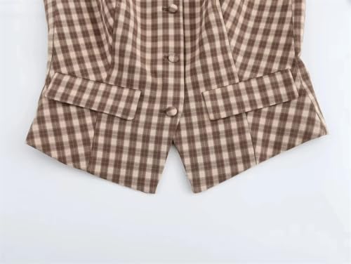 Women's Office Plaid Suit Single Breasted Sleeveless Blazer Zipper Straight Shorts 5