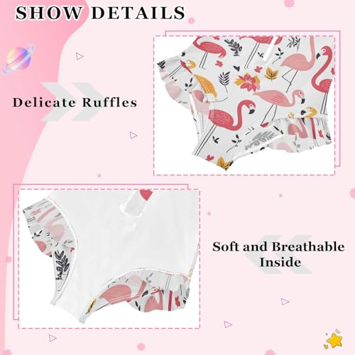 Flamingo Leaf Pattern Girls Long Sleeve Swimsuit Rash Guard One Piece Bathing Suits Zipper 3-12T 5
