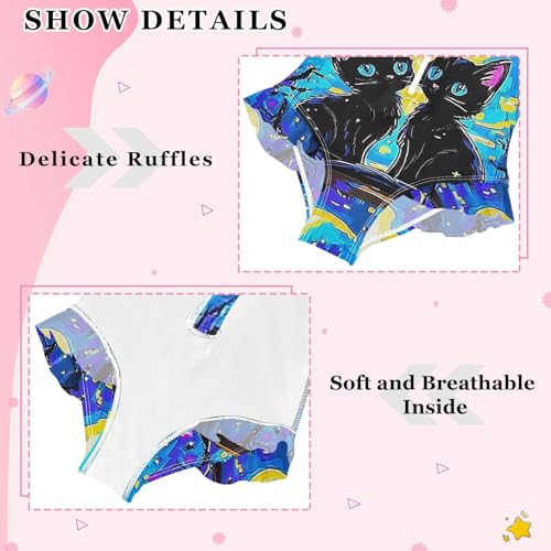 CaTaKu Girls One Piece Swimsuit Black Cat Starry Night Toddler Bathing Suit Long Sleeve UPF 50+ Rash Guard Swimwear 3-12Y 5