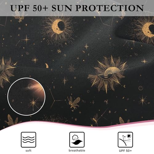 ALAZA Sun Moon Space Black Girls One Piece Swimsuit Long Sleeve Rash Guard Swimsuits UV 50+ Swimwear Zipper 4