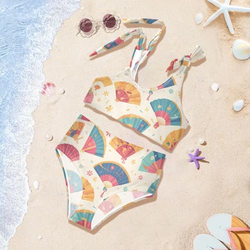 More information about KLL Hand Drawn Cute Japanese Fans Girl Two Piece Bikini Set Scoop Neck Bathing Suit Swimwear Adjustable Strap