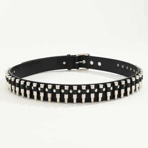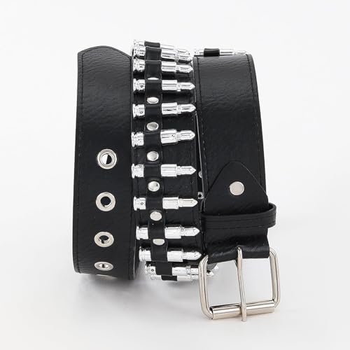Bullet Rivet Belt Black Leather Bullet Belt Punk Rock Metal Gothic Waist Belt Studded Belt for Men Womens Spike Belt Halloween Cosplay 7