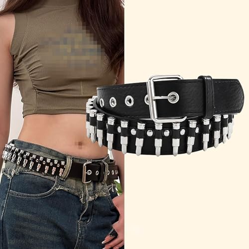 Bullet Rivet Belt Black Leather Bullet Belt Punk Rock Metal Gothic Waist Belt Studded Belt for Men Womens Spike Belt Halloween Cosplay 1
