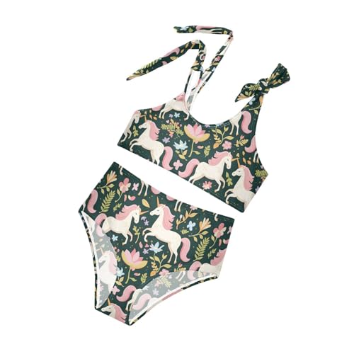 Wusikd White Unicorns Girls Swimsuits Two Piece Green Leaves Flowers Swimwear Bikini Set for for Girls Size 3T 5