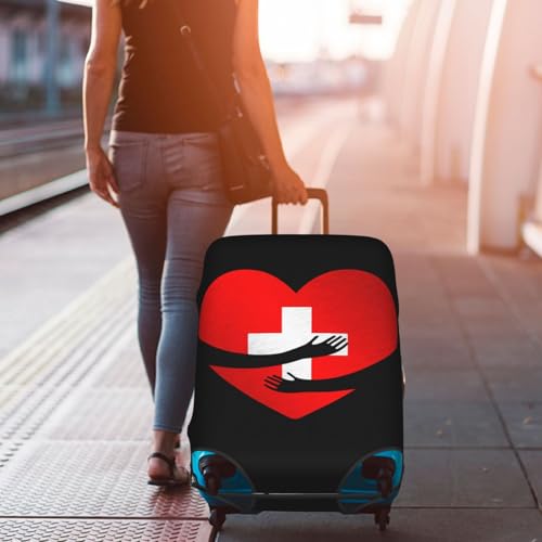 Travel Luggage Cover Swiss Flag Heart Fashion Washable Baggage Suitcase Protector Fit For Luggage X-Large 7