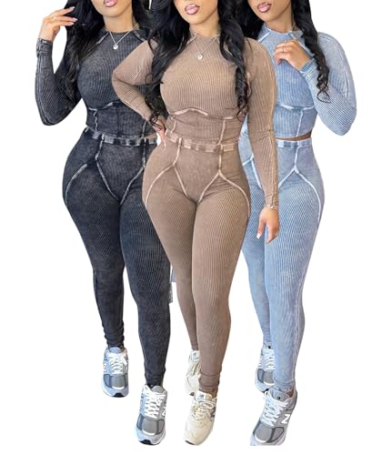 • Feature: The solid color fitted workout sets for women, ribbed design with a crewneck, skinny long sleeve crop tops and high waisted, tummy control, scrunch butt elastic leggings gives you a trendy and stylish look, making the leggings set suitable for both daily wear and social gatherings.