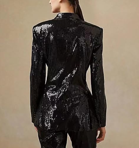 Women Suits 2 Piece Shiny Sequin V Neck Jacket Blazer Pants Sets for Prom Dinner Party 6