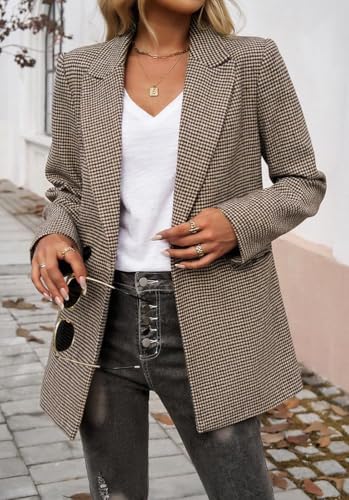 • uhbkezy womens plaid blazer 2025 open front houndstooth long sleeve lapel work office jackets button long blazer suit for bussiness with pockets