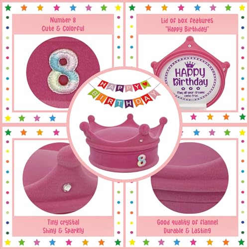 ZomefinKiu Girls 8th Birthday Bracelet - Pink, 8th Birthday Crown Box, Decorations & Jewelry for Girls 4