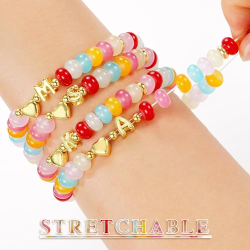 HOT ! M MOOHAM Colorful Beaded Initial Bracelet for Women - Dainty Beaded Bracelets for Women Trendy Charm Letter A-Z Personalized Heart Jewelry Gifts