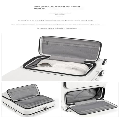 Suitcase Multifunctional front double-opening suitcase business password trolley boarding lightweight suitcase Suitcase Tags(White,A) 1