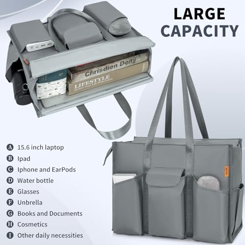 Tote Bag for Women Utility Travel Tote Bags With 8 Exterior & 7 Interior Pockets Zip Top Tote for Teacher Work 4