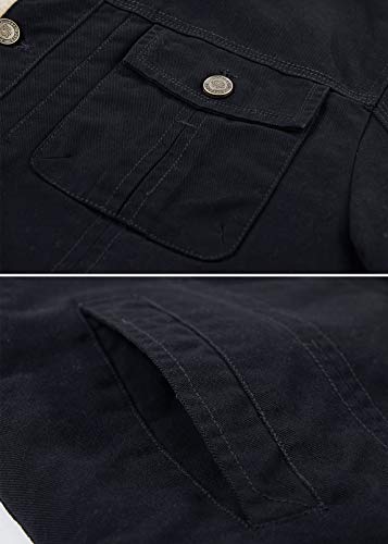 HOW'ON Men's Plus Cotton Warm Fur Collar Casual Button Military Cargo Jacket Outwear Parka Winter Quilted Coat 6