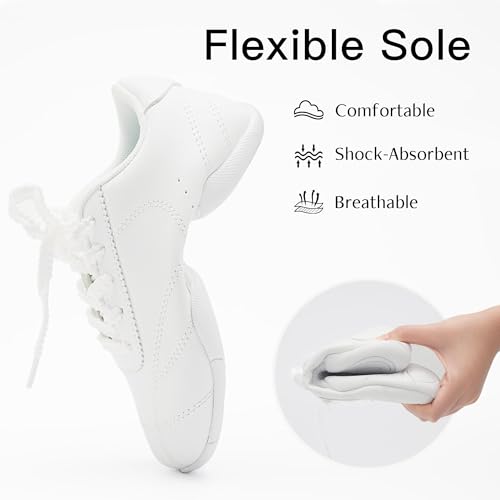 • Sturdy & Flexible Soles: You’ll have no problem crushing your routine, thanks to the intentionally designed soles on our soft cheerleading shoes. The non-slip segmented sole is lightweight but strong, giving you a solid grip on the mat, court, or field. We also added a flexible arch to make it easier to dance and tumble