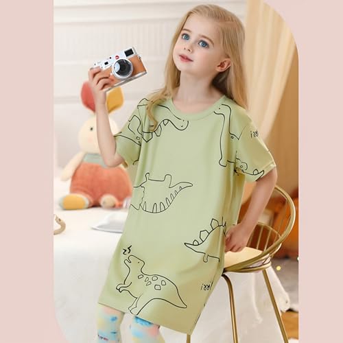 Girls Cotton Thin 𝐏ajamas Dress Dinosaur Graphic Crew Neck n𝐢ghtdress Tops Kids Lightweight Short Sleeve n𝐢ghtgowns 5