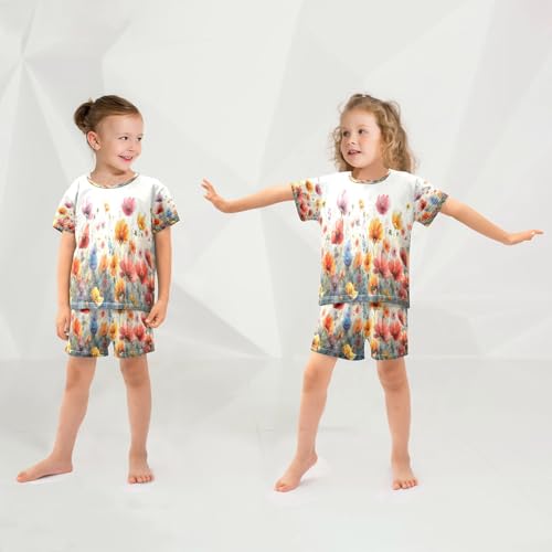 senya Short Sleeve Pajamas Sets Summer Cotton Sleepwear Watercolor Spring Flower 5