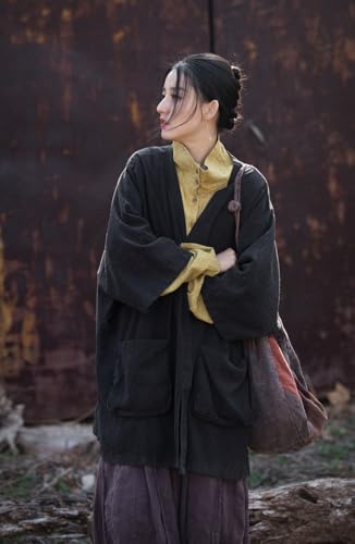 More information about Women's Ramie Loose Fit Windbreaker Jacket Kimono Sleeve with Pockets Coat Casual Oversized Outerwear