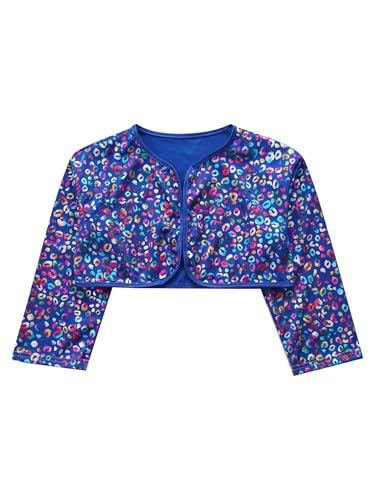 easyforever Kids Girls Boys Metallic Leopard Long Sleeve Crop Cardigan Shrug Tops for Cheerleading Dance Performance 6
