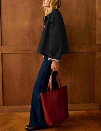 Dqbeng Womens Cropped Trench Coat Classic Collar Oversized Casual Jackets with Checkered Lining (Black-L) 1