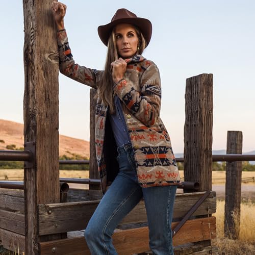 • WOOL-LIKE STYLE - Crafted with a stunning wool-like material, the Women's Moree Jacket exudes sophistication & warmth; The intricate whip stitch detailing adds a unique touch, while the bold tapestry design ensures you'll stand out during the cooler months