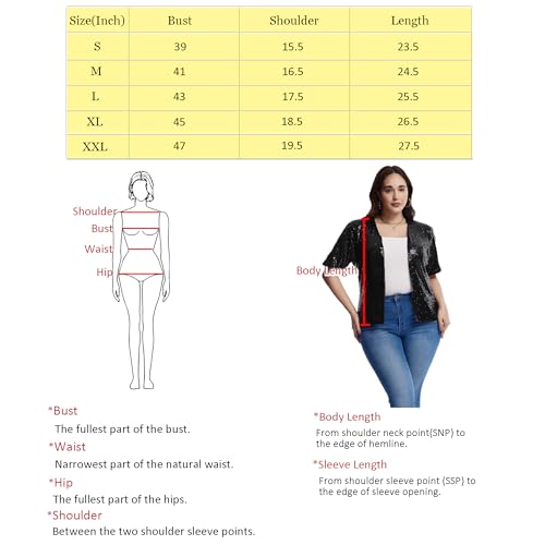 • FEATURES: The short sleeve sequin jacket, lightweight cardigan, sparkling sequins,fully lined, short sleeve sparkly cardigan, open front, lightweight and stretchy, loose fitting, short. Unique style makes you more beautiful, fashionable, sexy and elegant.