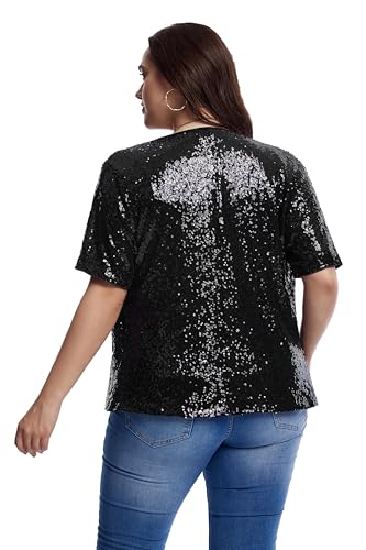 More information about Women's Sequin Jacket Sparkly Cardigan Short Sleeve Open Front Blazer Loose Casual Party Blouse Tops