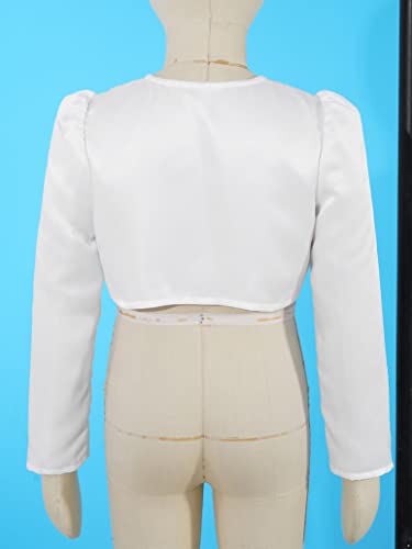 Kids Flower Girls Long Sleeve Bolero Shrug Cardigan Satin Open Front Wedding Party Dress Coat Bowknot Outerwear 6