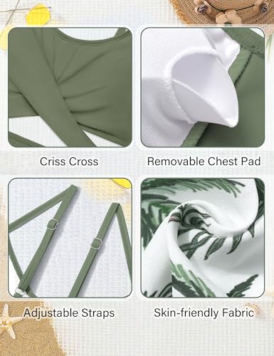 • 👙🌴【Unique Bathing Suit】: Features unique and styilsh tropical print, cross criss solid color bikini top and removable chest pad. Adjustable spaghetti straps and high-waisted bikini bottom provides a comfortable fit. Matching quick dry drawstring kimono cover up. With vibrant colors and fancy patterns, our Hawaiian-style girls bathing suit add more tropical vibes to girls. Ideal for summer!