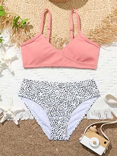 Milumia Girl's Two Piece Swimsuit Wrap V Neck Spaghetti Strap Wireless Bikini Set 2