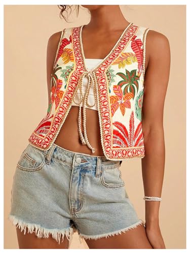 More information about GORGLITTER Women's Western Vest Tie Front Tops Boho Vintage Country Concert Rodeo Cowgirl Outfits Trendy 2025