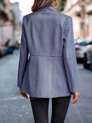 Women's Herringbone Open Front Business Jacket Casual Long Sleeve Notch Lapel Blazer Office Overcoats 6