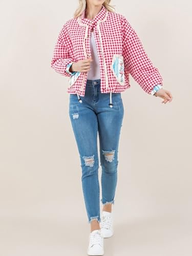More information about Womens Plaid Heart Pocket Jacket Snap Button Cropped Puffer Jacket Winter Gingham Heart Jacket Coat Outwear