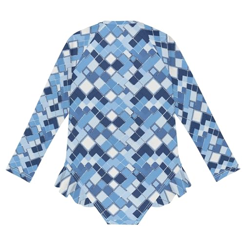 Blue Buffalo Check Plaid Girls Long Sleeve Rashguard Swimsuit UV Protection One-Piece Swimwear B0403957 1
