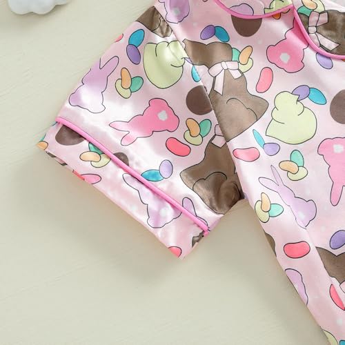 Toddler Baby Girl Easter Day Silk Pajamas Set Feather Trim Button Up Shirts Tops Shorts Pants Bunny Satin 2PCS Pj Set 5