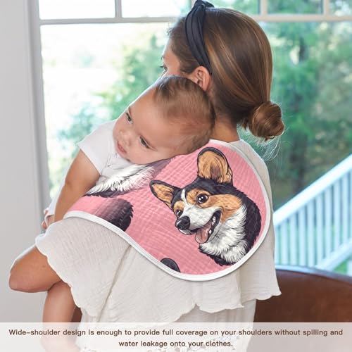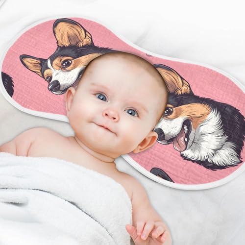 Muslin Burp Cloth for Baby 4PCS Happy Dog Corgi Super Absorbent Burping Cloths, Bibs for Newborn Boys Girls 6