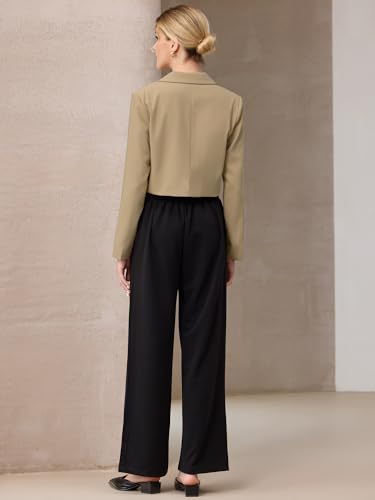 Women's Cropped Blazers Business Casual Double Breasted Long Sleeve Work Suit Jacket 6