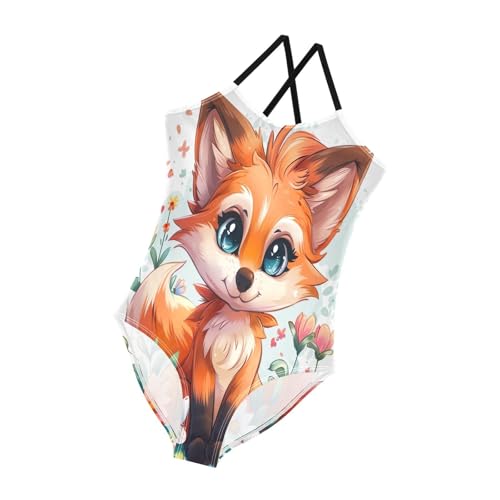 Girl Bathing Suits 3-10 Y Beach Apparel, Cute Cartoon Fox Flowers 1